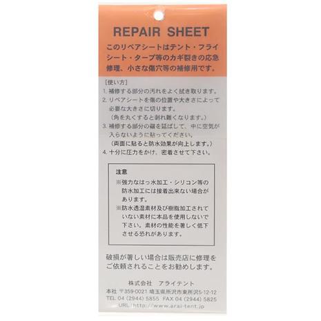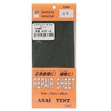 テントのグランドシートの防水加工を施された部分の補修に使用する、シール状のシートです。小さな穴の場合、ミシンなどによる修理よりも、このリペアシートによる補修のほうがうまく行える場合が多くあります。素材はテントに使用している布地を使用。