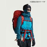 メインファブリックには、軽量性と耐久性に優れた〔eVent_〕を使用。ハーネスと接するウエスト回りのデザインを重要視ししたフィット性の高いシェイプ、腕上げなどのダイナミックな動きに対応するパターン設計を採用。ピットジップは横向きに配置し、効果的な換気ができ、登攀時でも開け閉めが可能。フードはヘルメットの装着を前提としつつも、スノーシャワーや防風性を考慮した形状。また、前方を高く設定し目の下部分の日焼けを防止。フロントジップ上部には呼吸をサポートする通気孔を確保。腰のベンチレーションポケットにはトリプルスライダーを採用。開閉のしやすさだけでなく、風の抵抗を抑えられるようにスライダー位置を調整可能。裾タブに視認性を高めるリフレクション加工。