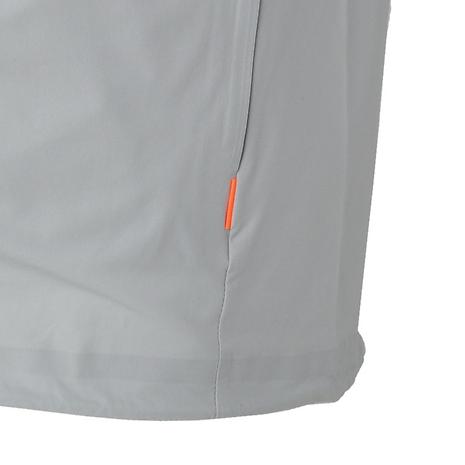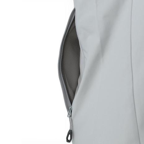 撥水性と通気性を併せ持ち、幅広く活用できるジャケット。ストレッチ性が高く、様々な動きを妨げないのも魅力です。ステッチを目立たせないようにして、洗練された印象のデザインに仕上げています。サイドポケットは圧着フラップで隠すようにセットしています。フードと裾にはドローコードがあしらわれ、フィット感の調整がスムーズです。高さのある衿は冷えやすい首元を広い範囲でカバーします。