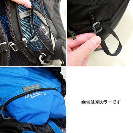 ・トレッキングポールやアイスアックスを固定する調整可能なアタッチメント・ループとフックアタッチ