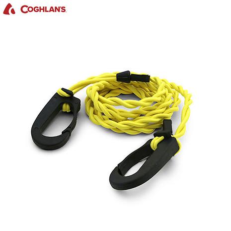 COGHLANS コフラン バンジークローズラインは旅行やキャンプへコンパクトに持ち歩ける、洗濯干しのラインです。2本のゴムをひねってあり、干す衣類を洗濯ばさみを使わずに挟み込み、吊るす事ができます。また、洗濯物だけでなくLEDランタンや、シェラカップなどキャンプに必要な様々なものを吊るす事ができます。カラーもかわいいイエローカラーで目立つ為、頭などに引っ掛け難くなっています。
