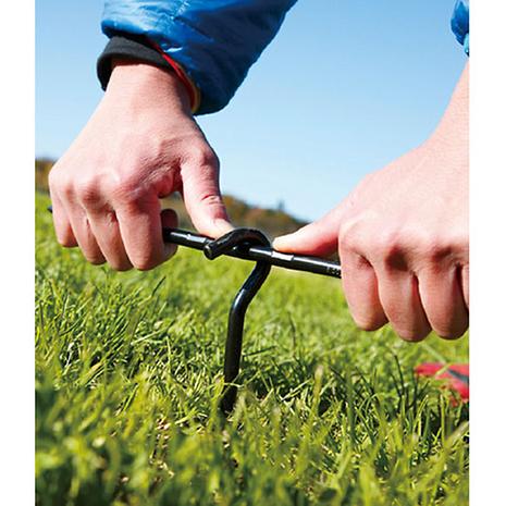 風を受けやすい大型タープや大型テントでもがっちり固定できる最高強度を誇るペグです。スチール棒をプレスすることでさらに強度を上げることに成功しました。ハンマーを打ちやすい形状に上部を曲げ、力を逃がすことなく効率よく伝える構造が特徴です。万が一、打ち損ねても曲がりにくい強度は、テストデータからも実証済みです。