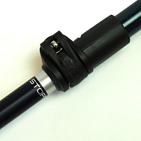・ロックの圧力調整について。ロックパーツのギア状のリングを回すことで、ロック圧を調整できます。圧を軽くし過ぎると地面についたポールが短くなって事故の元となることがございます。ご注意ください。