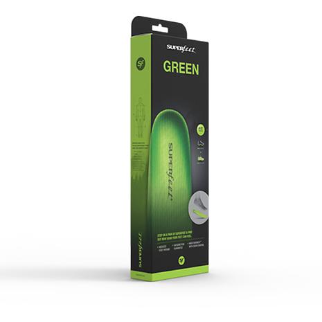 グリーンは最強のサポート性を備え、かつ最大限の衝撃吸収性を持つ高性能なフットベッドです。足の性能を最大限に引き出す設計は、多くのアスリートから高評価を得ています。シューズでも、ブーツでも、ユーザーの足にフィットし、本来各自が兼ね揃えた性能を引き出し、健康的で快適な感覚を得るために、グリーンは必需品です。ハイインパクト・プラスティック製スタビライザーと、一般インソールの2倍以上の圧力で作られたヘタリのない本体が、足部をしっかり支えます。
