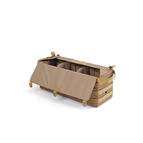 テーブル、チェア、コットに取り付けることができる、小物ケースです。サンセットチェアを収納可能です。また、仕切りが付属している為、単体での小物知れとしてもご使用頂けます。