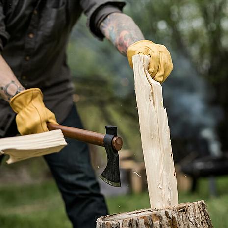 豊かな土地へのオマージュから作られたフィールドハチェットは、モダンなデザインを伝統に根ざした製法によって作られています。暖炉やフィールドでも役立ちます。