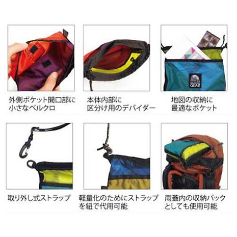 トレイルを歩く時の良く使うアイテムの収納はもちろんテント場や山小屋内で貴重品やアメニティーグッズを持って行動するのにも最適なサイズのシルナイロン製ポーチ。