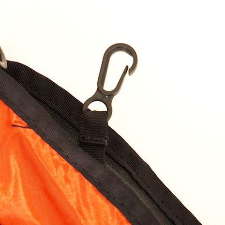 取り外し式ストラップは軽量化したい時には細引きに交換したり、外した状態でパック内の収納バッグとしても使えます。外側の地図を入れるポケットには小さなベルクロが付き地図以外のアイテムを入れても中身の飛び出しを防ぎます。また本体内部にも区分け用のデバイダーが小物の整理に役立ちます。開口部にはジッパーが付いていますので中身をホールドしてカメラや必要なアイテムを簡単に取り出せます。内部にキーチェーン付き。