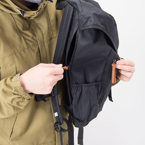 豊富なポケットを備えた、シンプルでクラシックなルックスでありながら使いやすい機能を盛り込んだモデル。機能性を高めるだけでなく、アウトドアテイスト溢れるデザインのアクセントにもなる、カラビナなどをかけることのできるデイジーチェーンをフロント部分に装備。