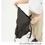 大口のオープンメッシュポケットをフロントに設置し、