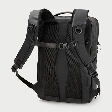 塩化銀を有効成分とした抗菌・抗ウイルス加工技術ViralOff_ (R)を施したポケットを備えたコミューターリュックサック。シンプルなスクエアフォルムでビジネスシーンや服装を選ばないデザイン。豊富なポケットを備えて使い勝手がよく、登山用リュックサック開発での技術をショルダーハーネスの形状にも生かし、ビジネスシーンでも快適な背負い心地を実現。背面にはスーツケースに取り付けも可能なポケットを装備。メインコンパートメントは、荷物の出し入れがしやすいフルオープン構造。