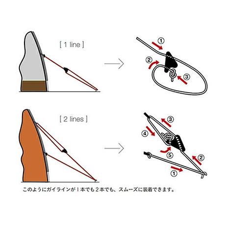 内側の溝でロープをロックして、テントやタープのガイラインにテンションをかけるアイテムです