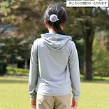 「防虫」「吸汗速乾」「UVカット」機能を持つトランスウェット・スコーロンを使用。細かな穴開き構造により通気性に優れ、薄く、蒸れにくいので虫の多い盛夏でも着用が可能です。フード付きで、顔の周りや首の後ろもガード。アウトドアからデイリーユースまで防虫・日焼け対策として幅広く使えるパーカーです。