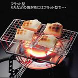 焼網の置き方を替えるだけで、トーストを焼くのに最適な「山型」と、もちなどの焼き物に最適な「フラット型」と2通りのセットができます。