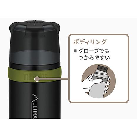 山のフィールドで要求される多くの条件を想定して作られました。しっかり握れるボディリングに、衝撃に強い底カバー、保温力・耐久性を高めた「山専用ボトル」です。