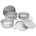 アルミ製の食器セットです。大中小3つのボールとフタ(お皿)、お皿2枚の6点セット。