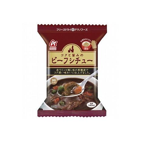 風味とコクが加わって、味にぐっと深みを出しました。煮込んだ柔らかビーフとたまねぎ、さやいんげん、にんじんの濃厚ビーフシチューです。カップ一杯分の一人分サイズで、お湯を注ぐだけで本格的な味わいを楽しんでいただけます。