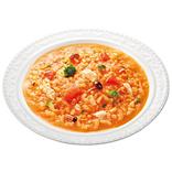 トマトの酸味がゴルゴンゾーラチーズとパルメザンチーズの旨味をより引き出したリゾットです。精白米(国産)、トマトペースト、ブロッコリー、ぶなしめじ、蒸し鶏肉、グリルトマト、クリーム、パルメザンチーズパウダー、ゴルゴンゾーラチーズパウダー、バター、ポークエキス、チキンエキスパウダー、食塩、チキンエキス、砂糖、香辛料、ブイヨン風調味料、酵母エキスパウダー、乾燥パセリ/調味料(アミノ酸等)、酸味料、pH調整剤、酸化防止剤(ビタミンE)、香辛料抽出物、(一部に小麦・乳成分・大豆・鶏肉・豚肉を含む)
