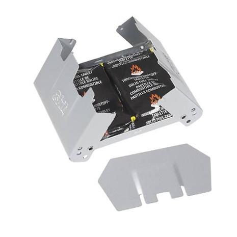 従来のポケットストーブとポケットストーブ ラージの中間サイズです。ウインドシールドが付属し、固形燃料27gが2タブレット付属します。ウインドシールドにより側面の防風性が高まり、固形燃料27gは189kcalと固形燃料のなかで一番高出力です。1 タブレットで500mlの水を約5分20秒で沸かすことが可能です。
