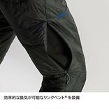 適度な保温力を備えながら軽く、優れた通気性と肌面の生地の親水コーティングによる汗処理能力も兼ね備え、レイヤリングの相乗効果でウエア内の濡れや蒸れを軽減。行動着用中の快適さを維持します。