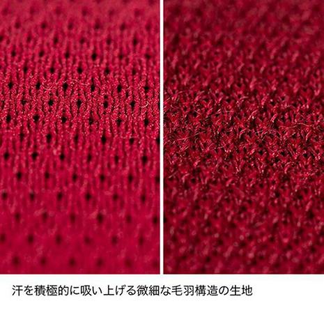 メリノウール本来の保温・調湿性と高機能ポリエステルの吸汗速乾加工を兼ね備えているため、蒸れにくく汗を素早く乾かします。