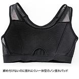 極薄メッシュの軽い着心地でありながら、バストを左右一体型のブラパッドで優しくホールドし、締め付けないのに揺れにくい新感覚のつけ心地です。
