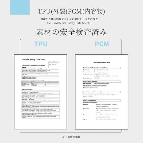 ・内容物:PCM(Phase Change Material:相互交換物質)