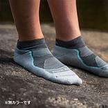 ロングトレイルでも脱げないように設計されたこの軽量メリノウールのトレイルハイクソックスは、足の上部に通気性のあるメッシュを採用しており、デイユースでも多目的に使用できるアイテムです。