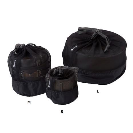 メッシュ素材を使用し、底部分をナイロンで補強したクッカーバッグです。カップに適したSサイズ、ソロクッカー用のMサイズ、Lサイズはやや大きめのコッヘル用です。