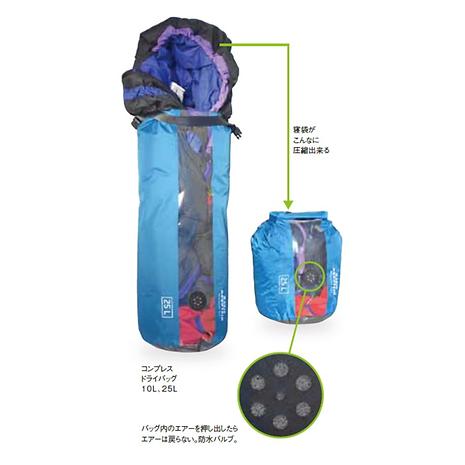 コンプレッサーバルブが付けられたのでバッグを圧縮すると、内側のエアーは外へ出されて戻らない。