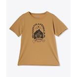 前面に花と山をモチーフにしたピースフルなロゴグラフィックを大きく配置したショートスリーブTシャツです。幅広いアクティビティで使いやすい吸湿速乾性を持ち、コットンライクでしなやかな着心地。アウトドアでもデイリーでも活躍する使いやすい1枚です。