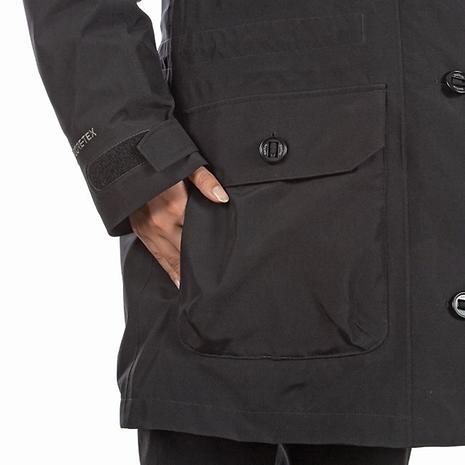 合計9個のポケットを装備し、収納力も抜群。手袋をしたまま操作できる大型ボタンは機能性だけでなく、デザインアクセントにもなっています。