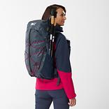 低山の山小屋泊山行からミニマルなファストパッキングといった軽量装備での軽快なハイク&ランに最適、高い機動力と機能性を兼ね備えた軽量バックパックです。ミニマルでクリーンな外観のボディには軽量かつ高耐久な100デニールのダイアモンドロビックナイロンを採用。高い通気性と安定した背負い心地を実現した背面システムは、暖かい時期のアクティブな旅での快適性を提供します。雨蓋とフロントジッパーどちらからもアクセスできるメイン収納はパッキングや出し入れも楽々。サイドには便利なメッシュストレッチポケット、外側にはデイジーチェーンとバックル留めのバンジーコードによってシンプルながら汎用性の高い収納を実現しています。この女性向けモデルでは女性の体型に合わせて背面長やストラップの形状などを調整しています。28リットルは日帰り登山から小屋泊まり、軽量装備のテント泊など、工夫次第で幅広い山行に適応する汎用性の高いサイズ。ハイキングはもちろん、ファストパッキングやヴィアフェラータ、サイクリングなど軽快さを楽しむ多様なアクティビティに対応します。