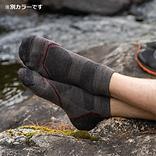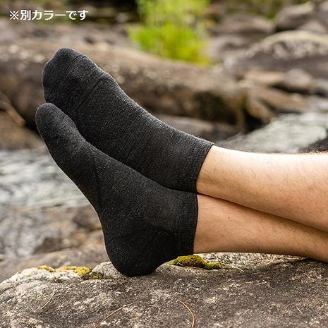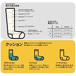 ライトクッションはクッションソックスのライト版で17.5ミクロンのメリノウールヤーンを使用し、ヤーン重量を従来の半分に抑えつつもテリーループ密編みで柔軟かつ同等の耐久性を実現しました。甲はメッシュ構造です。
