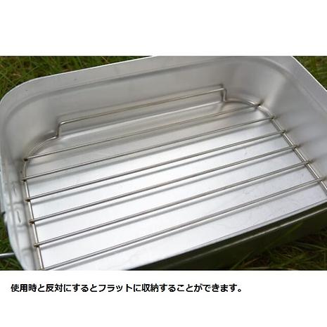 メスティン本体は、携行性を考え薄いアルミを使用しています。このメッシュトレイを燻製に使用したり、水気の少ない状態で調理したりするとメスティン本体が熱損することがありますのでご注意ください。