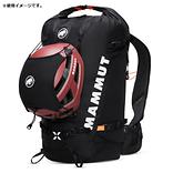 マムートのバックパックの外側に自在に取り付けられるヘルメット用ホルダー。柔軟な素材にヘルメットが安全に収納され,簡単に搬送できます。