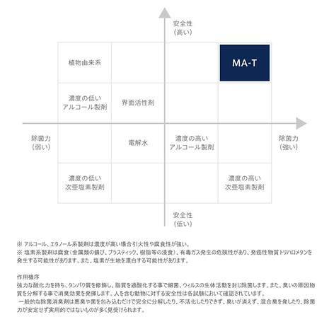 MA-Tは株式会社エースネットが18年の歳月をかけて創りあげた独自技術で、除菌消臭作用を持った無色、無臭、無刺激性の水溶液です。