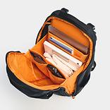ディストリクトシリーズでは2サイズのバックパックを展開。主な違いは持ち運べるPCのサイズで、ディストリクト24には17インチのラップトップスリーブを装備しています。一回り小さいディストリクト15に比べて、17インチのノートPCを携帯する方は装備品も増える傾向があるため、高さ、幅、奥行を少し大きく設計しています。軽量なフレームと固定式ハーネス、通気性の高いオープンセルフォーム(体に触れるメッシュ素材)のシンプルな設計で、他のパックと同様、大変快適な背負い心地です。