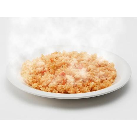 うるち米(国産)、味付乾燥具材(乾燥人参、味付玉ねぎ、味付えび)、調味粉末(粉末醤油、食塩、赤唐辛子パウダー、砂糖、ガーリックパウダー、昆布だし)/調味料(アミノ酸等)、トレハロース、酸化防止剤(ビタミンE)、リン酸塩(Na)、(一部にえび・小麦・大豆を含む)