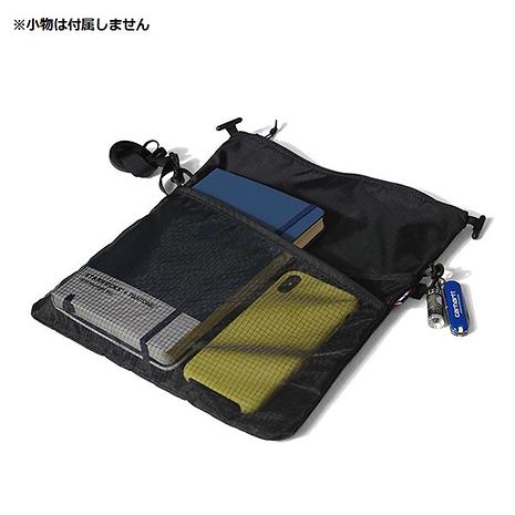 外側には2つのメッシュポケットが付いており、片側を返すと両側ポケットにする事も出来ます。ネックストラップは長さ調整、取り外しが可能で小さく折り畳むことが出来ます。