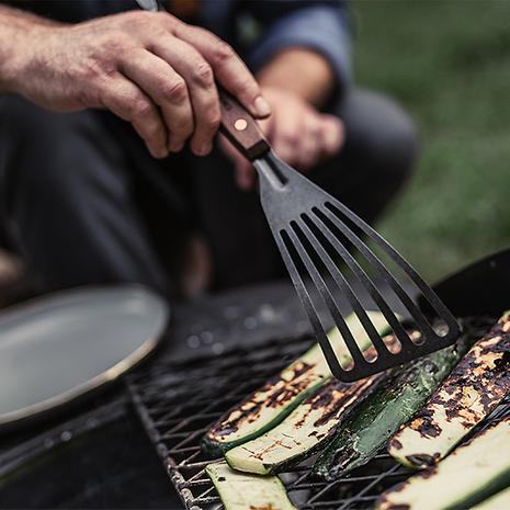 Barebones ベアボーンズ カウボーイグリル フィッシュスパチュラは繊細な魚や他の食品等を引っくり返すのに便利なスパチュラです。ヘラ部分は大きく、湾曲している為、比較的簡単にひっくり返すことができます。