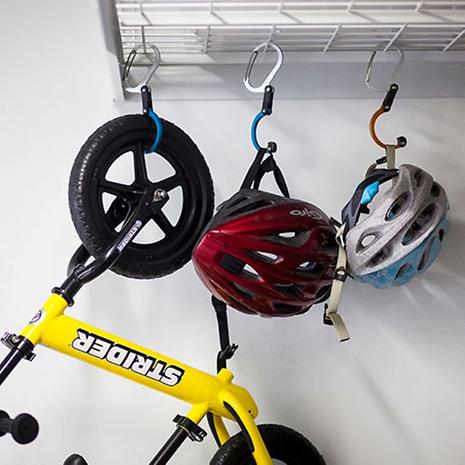 変幻自在のカラビナ型フックのHEROCLIP。カラビナとしての使用はもちろん、開けば360度回転するフックが現れS字フックや回転フック、バックハンガーに早変わりします。