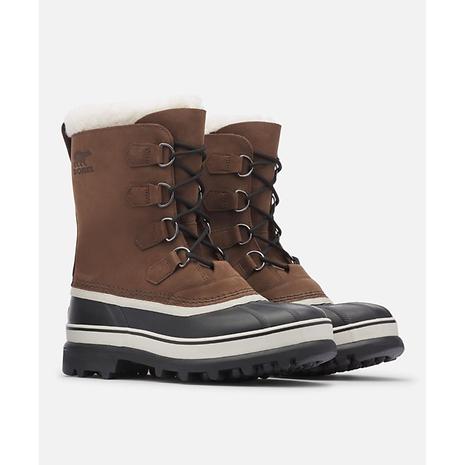 40年以上変わらぬデザインを誇るソレルの代名詞「カリブー」。ウィンターブーツの名作として世界に君臨する、オーセンティックな魅力がいっぱいのモデルです。品良くウォーム感を演出する防水ヌバックアッパーには防水シームシールを施し、水の侵入をしっかりとブロック。2.5mmの圧縮フェルトフロストプラグを搭載したミッドソールと、着脱可能な9mm厚のリサイクルフェルトインナーブーツが地面からの冷気の侵入を防ぎ暖かな履き心地を実現します。極寒の地でも耐えうる強固な作りは、厳しい環境をものともしない安心感があります。一度履けば手放せなくなるはず。