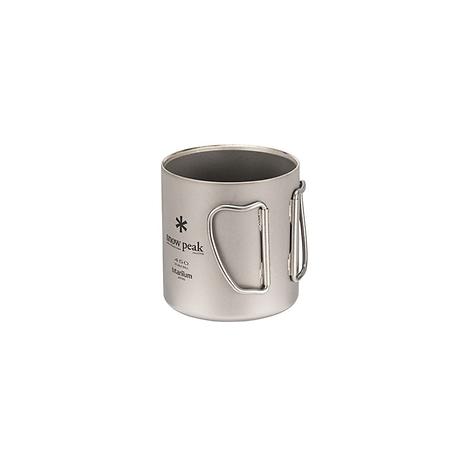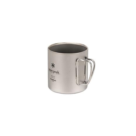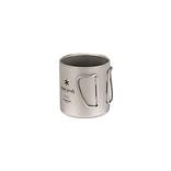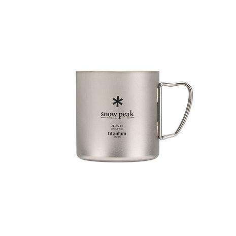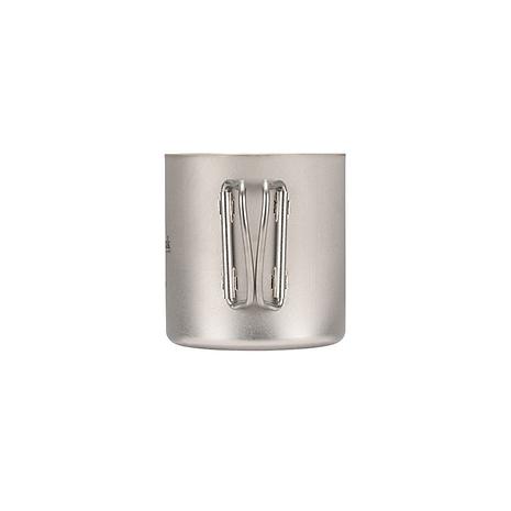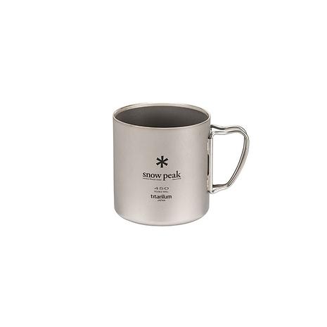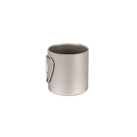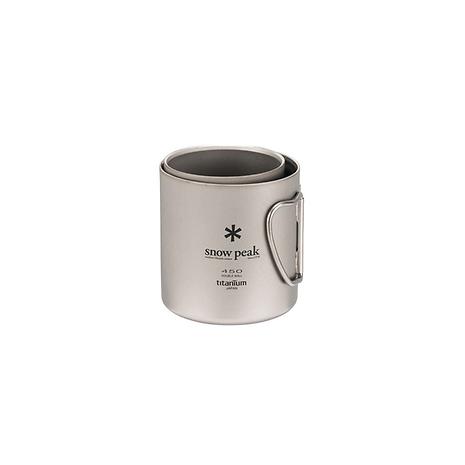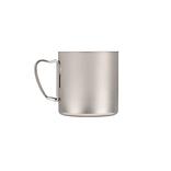 チタン製のダブルウォールのマグカップ。二重構造はシングルウォールに比べて氷が溶けにくく、結露しにくいため、冷たい飲み物にもぴったり。保温性も高く、温かい飲み物にもおすすめです。熱い飲み物を入れてもカップの淵が熱くならないので安心。450㎖のサイズはスープなどのお食事を入れるのもオススメ。