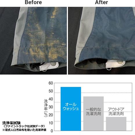 機能を低下させないだけでなく、いままでの洗剤ではうまく落ちなかったしつこい泥汚れやニオイや黄ばみ、黒ずみまでしっかり落とします!
