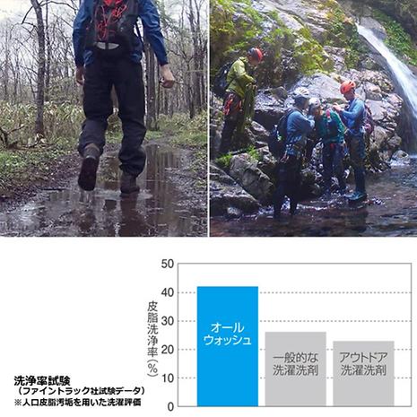市販の洗濯洗剤の中には、漂白剤や柔軟剤、香りのカプセルなど、すすいでも落ちずに繊維に残り、アウトドアウェアの機能性を阻害するものがあります。