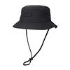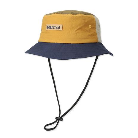 撥水加工を施したバケットハット。吸水速乾機能を持った汗帯テープ付き。Marmotロゴはシリコンプリント仕様。コードは取り外し可能。背面アジャスターでサイズを調整可能。