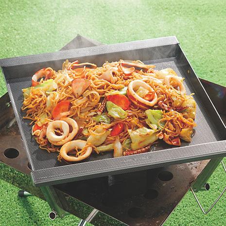 ユニフレームファイアグリルのツメにしっかり固定できてズレにくいファイアグリル専用のエンボス加工の鉄板です。