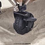 取り外し可能なタイヤでそのまま車載可能。 ワイドタイヤで卓越したオフロード性能