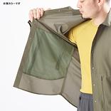 50.1cm3 /cm2 /sという驚異的な通気度の素材を採用した、なにも着ていないくらい風通しのいいシャツです。それならそのシャツ着なくてもいいのでは?と思うかもしれませんね。どうして着るのかというと一枚あるだけで体感が違うからです。この一枚があるとちょっとだけ暖かくそれでいて暑くならない、そんな感じです。ポケットの脇と中心側にジッパーを設けているので、ジャケットなどをレイヤードしている時には中心側のジッパーから素早くアクセスできて便利です。